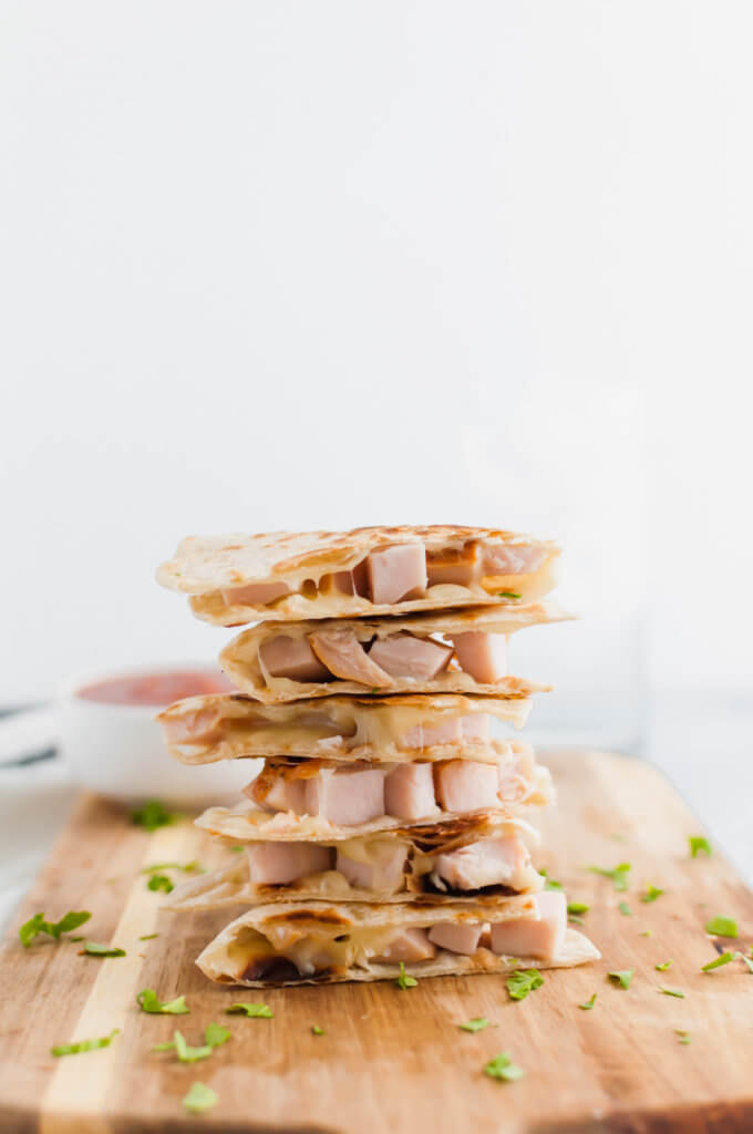 If Mexican night sounds like a good idea, look no further than a crispy turkey quesadilla. Cheesy, crunchy and loaded with protein, the only thing missing is an ice cold cerveza!