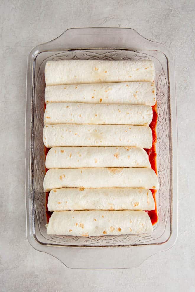 Spoon about 3 tablespoons cream cheese mixture and 1/3 cup turkey mixture down the center of each tortilla. Roll up and place seam side down in baking dish.