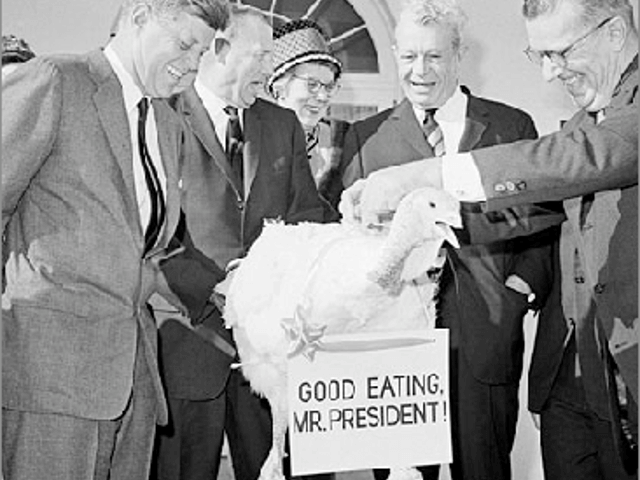 Our special guest seems . . . understandably nervous, but let me assure you, and this fine tom turkey, that he will not end up on anyone’s dinner table, not this guy. He’s granted a Presidential pardon as of right now…