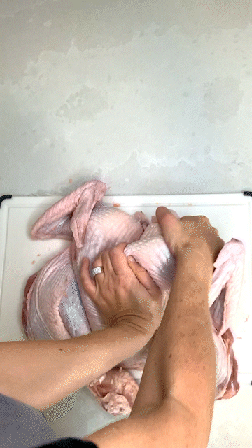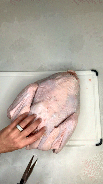 Spatchcocking is removing the backbone of a turkey and laying it flat on its cooking surface. Yep, it’s that simple!