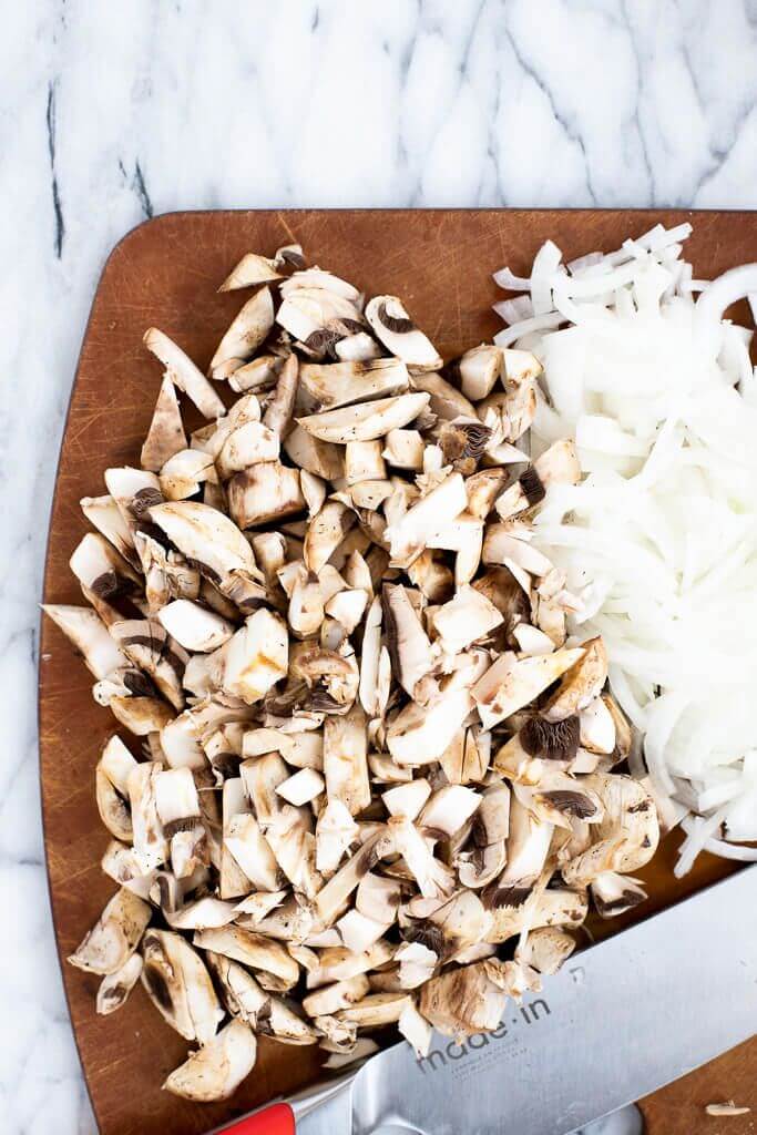 Heat 2 tablespoons of butter in a medium skillet over medium heat. Once it foams, add mushrooms and onions to pan. Season with a pinch of salt. Cook, stirring regularly, for about 6-8 minutes, until soft and lightly caramelized.