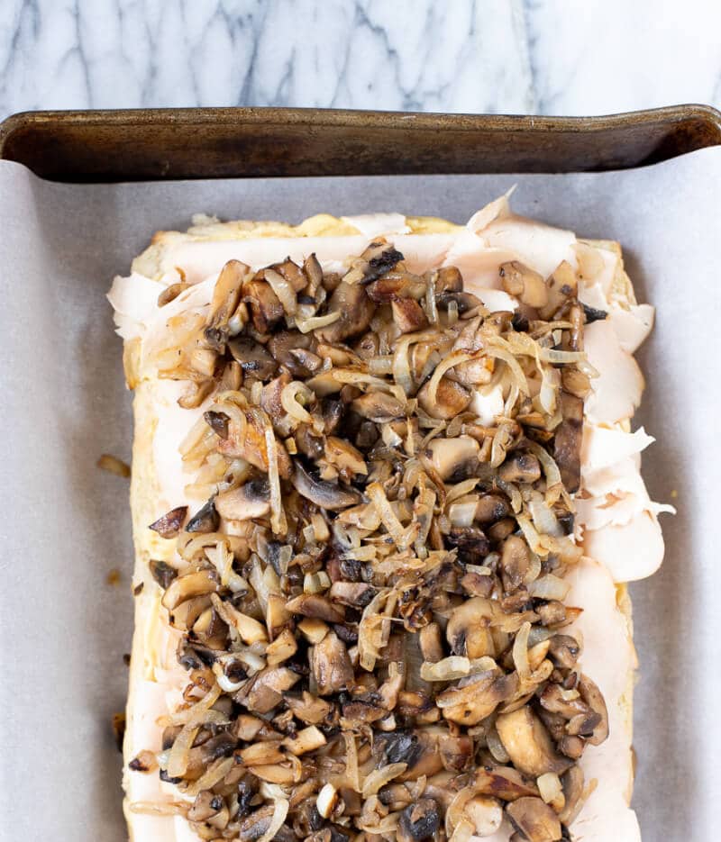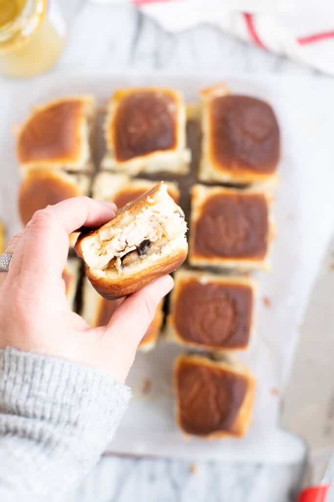 “These Hawaiian roll turkey sliders have layers of dijon mustard spread, smoked deli turkey, sauteed mushrooms and onions, and a layer of provolone to melt it all together. It’s a weeknight meal that everyone will be excited to eat. It also works well for parties or get-togethers and can be prepped ahead.” – Emily Dingmann, My Everyday Table