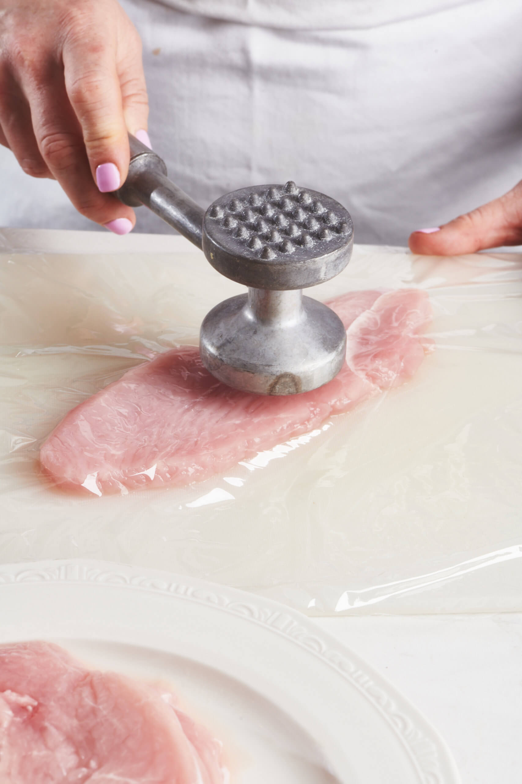 If your turkey cutlets are about ¼ inch thick to start with, there is no need to pound them. If your cutlets are more than ¼-inch thick, you can place the cutlets between two pieces of plastic wrap and pound them gently with the flat side of a meat mallet, or a rolling pin or wine bottle until they are flattened and of uniform thickness.